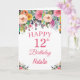 Carte rose 12th Birthday Watercolor Floral Flowers avec nom et âge personnalisés. Pour plus de personnalisation, cliquez sur le bouton "Customiser" et utilisez notre outil de conception pour modifier ce modèle.