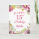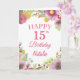 Carte rose 15th Birthday Watercolor Floral Flowers avec nom et âge personnalisés. Pour plus de personnalisation, cliquez sur le bouton "Customiser" et utilisez notre outil de conception pour modifier ce modèle.