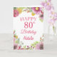 80e Anniversaire Floral Flowers Carte rose avec nom et âge personnalisés. Pour plus de personnalisation, cliquez sur le bouton "Customiser" et utilisez notre outil de conception pour modifier ce modèle.