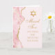 Une décoration en agate rose et or orne le côté de cette carte de félicitations moderne pour une Bat Mitzvah. Mazel Tov ! Personnalisez-la sous l'étoile de David. C'est la carte de vœux idéale pour une famille juive élégante et chic qui célèbre l'appel à la Torah d'une jeune fille.