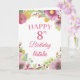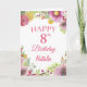 Carte rose 8 Anniversaire Floral Flowers avec nom et âge personnalisés. Pour plus de personnalisation, cliquez sur le bouton "Customiser" et utilisez notre outil de conception pour modifier ce modèle.