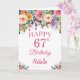 67e anniversaire Watercolor Floral Flowers Pink Card avec nom et âge personnalisés.