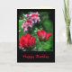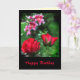 Cette carte d'anniversaire présente deux exquis petits bourgeons de rose rouge au premier plan et un magnifique amas de lys rouges, roses et blancs doucement parfumés au loin. Les couleurs vives brillent par la verdure estivale. Plus de bourgeons roses sont éparpillés à l'intérieur. Customisez le texte en fonction de vos besoins.