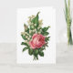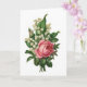 Une illustration vintage d'un rose s'est levée en pleine floraison avec un bouton de rose rose attendant à la fleur entourée par les lis blancs savoureux de la vallée. Cette carte est intérieur vide pour votre propre message.
