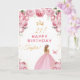 Cette carte d'anniversaire élégante et glamour peut être personnalisée avec un nom ou un titre comme fille, petite-fille, nièce, ami etc. Le design présente une belle princesse aux cheveux blonds dans une robe de boule rose rousse. Le texte combine écriture manuscrite et polices sans serif modernes pour un look élégant et sophistiqué. Les arrangements floraux, papillons et confettis d'or créent un mélange parfait de rustique et de chic. Graphiques par www.etsy.com/uk/shop/SunflowerDayLove