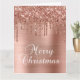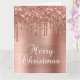Carte Rose Gold Glitter Drips Metallic Merry Christmas