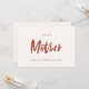 Une carte-cadeau simple et minimaliste pour écrire un message personnel et sincère à votre mère le jour de votre mariage. Entièrement personnalisable avec vos couleurs préférées. Vous pouvez ajouter un message au dos, ou le laisser vierge si vous préférez écrire votre message à la main plus tard.