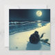 Un carte pour notes assez vierge pour écrire vous-même ou quelqu'un d'autre une note sur. Une nuit sereine sur la plage. Un rose noir solitaire posé sur le sable. Une pleine lune dans le ciel. Des vagues s'écrasent sur un rivage sablonneux.