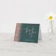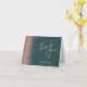 Cette élégante carte de remerciements mariage moderne est bordée d'une parties scintillant rose en faux or sur un arrière - plan vert émeraude foncé. Le texte personnalisable combine les mots "Merci" en écriture manuscrite rose rose et les noms de la mariée et du marié en caractères italiques. Customisez l'intérieur de la carte avec votre photo de mariage horizontale préférée et un message personnel à vos invités.