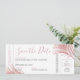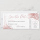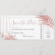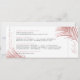 Rose Gold rose vif frondes de palmiers tropicaux sur une carte d'embarquement moderne billet d'avion enregistrer la carte de date parfaite pour un mariage à la plage ou un mariage tropical. Tout le texte peut être personnalisé, ainsi que le texte et la couleur arrière - plan. Les informations de voyage sur le dos peuvent être supprimées si nécessaire. Cliquez sur CUSTOMISER PLUS LOIN pour effectuer cette opération dans l'éditeur avancé.