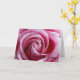 Une belle carte, élégante, avec une photo en gros plan d'une rose rose, et un message 'En pensant à vous...' en typographie cursive. Au dos se trouve la même image et à l'intérieur un message qui peut être personnalisé. Tous les textes et polices peuvent être personnalisés selon vos besoins.