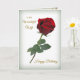 Carte d'anniversaire pour femme avec rose rouge romantique et confettis à effet doré.