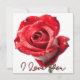 Carte Rose rouge élégante avec écrit "Je t'aime"