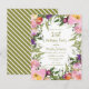 Feuilles rose et violet d'aquarelle floral et sauge et vert olive sur blanc invitation de fête du 21ème anniversaire pour les femmes. Le dos de cette carte est rayé vert olive et blanc. Contactez-nous pour obtenir de l'aide sur la personnalisation ou pour demander des produits correspondants.