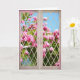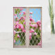 Roses dans le jardin de fenêtre fleurs arche romantique avec carte de scène du ciel bleu
