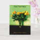Un verre avec dix belles roses jaunes est posé sur une table sombre sur un mur vert. Customisez en ajoutant votre propre texte.