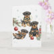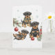 A heartwarming Christmas card featuring three cheerful Rottweiler puppies surrounded by festive decorations. Soft snowflakes fall across the design while pine branches, ornaments and glowing fairy lights set a cosy holiday mood. The illustration carries the warm and nostalgic charm that defines Tradition Treasures, making it a delightful card for dog lovers and anyone who enjoys a joyful Christmas scene.