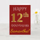 Carte Rouge, Faux Or 12e Anniversaire de Mariage + Nom