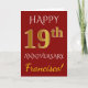 Carte Rouge, Faux Or 19e Anniversaire de Mariage + Nom