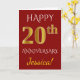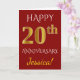 Carte Rouge, Faux Or 20e Anniversaire de Mariage + Nom