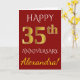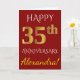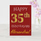 Carte Rouge, Faux Or 35ème Anniversaire De Mariage + Nom