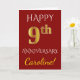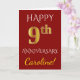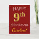 Carte Rouge, Faux Or 9e Anniversaire de Mariage + Nom