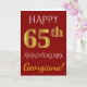 Carte Rouge, Or Faux 65e Anniversaire de Mariage + Nom