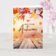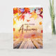 Envoyez vos vœux saisonniers chaleureux avec cette carte de vacances « Bienvenue en Automne », avec des teintes orange et rouge riches inspirées des feuilles d'automne. Parfait pour Thanksgiving, les fêtes de novembre, ou simplement pour partager des souhaits d'automne confortables avec la famille et les amis. Une façon festive de bienvenue à la beauté de la saison.