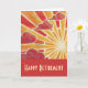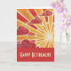 Un coucher de soleil d'or et d'orange et le vent souffle des nuages rouges et roses dans le ciel. Carte de voeux avec un design personnalisable or, orange, rouge, rose et blanc pour vous permettre de personnaliser avec votre propre texte, images et idées. Un crayon de couleur originale et un dessin à l'encre métallique de Jess Perry.
