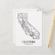 carte postale graphique et simple avec la carte de l'État de Californie avec ses principales routes.