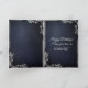 Une carte d'anniversaire en cuir bleu foncé et luxueuse, ornée d'un relief royal en argent gothique, d'un crâne métallique en argent, flanqué d'une couronne de laurier de feuilles argentés brillants, et enfin d'une couronne argentée éclatante, d'une lumière pâle éblouissante symbolisant un linage royal ancien. Parfait pour un anniversaire sur le thème du roi avec une touche gothique royale. La carte idéale pour les amateurs de sombres et occultes, de sorcellerie arcane et d'horreur macabre.