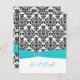 Carte RSVP Aqua, Blanc, Noir Damask II
