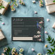 Cette carte moderne Black Peacock RSVP propose des fleurs d'oiseau et de magnolias bleu et turquoise dessinés à la main, ainsi qu'un élégant motif floral et ornithologique sur le dos, le tout contre un élégant arrière - plan presque noir. Tout le texte est modifiable.