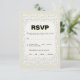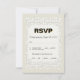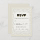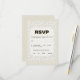 Carte RSVP moderne et personnalisée pour mariage. Le design élégant et sophistiqué est composé de formes géométriques rappelant la dentelle blanche. La carte RSVP inclut le nombre d'invités et le choix des repas à la cérémonie. Le texte est noir avec une nuance de brun clair dans le titre. Le texte peut être modifié selon les besoins.