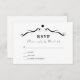 Simple blanc avec carte RSVP en texte noir avec un élégant élément de design ornemental.