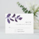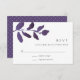 Conçue pour coordonner avec notre collection de mariages botaniques en Pressé, cette carte RSVP chic en prune et blanc présente un ressort unique de feuillage botanique violet violet vif, surmontant la date de réponse désirée et une formulation personnalisée d'acceptation et de déclin.