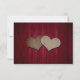 Carte RSVP de mariage rustique bordeaux avec un bocal de mason et deux coeurs de burlap avec initiales contre un arrière - plan rustique en bois. Personnalisez facilement cette jolie carte RSVP bordeaux rustique en ligne.