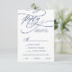 Cette carte RSVP de choix romantique de calligraphie marine est parfaite pour un mariage simple. Le design classique moderne comprend des tourbillons fantaisistes et des fleurs fantaisistes avec une magnifique typographie élégante et lettrée à la main. Cette carte de réponse mariage demande aux clients quel repas ils souhaitent à la réception.