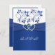 Carte RSVP Cœurs Unis Fleuris Bleu Royal et Blanc