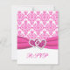 Cette carte-réponse personnalisable rose et blanc damassé avec un ruban et bijou imprimé rose chaud, joint coeurs de parties scintillant broche diamant correspond au faire-part de mariage ci-dessous. Si vous avez besoin de modifications ou d'autres éléments correspondants, veuillez envoyer votre demande par courriel à niteowlstudio@gmail.com. VEUILLEZ NOTER que cette carte RSVP de taille ne correspond PAS à l'invitation du carré, également dans cette conception.