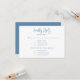 Ce menu blanc et bleu poussiéreux à la carte RSVP fleur sauvage botanical est élégant et simple. L'avant est minime avec la typographie de script. Le dos présente la même floraison délicate mais audacieuse présentée sur votre invitation.