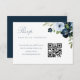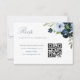 Une carte rsvp de mariage avec code QR, bleu clair et fleurs navales. Vous pouvez personnaliser le texte et la couleur pour correspondre à votre propre thème mariage.
