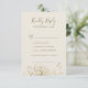 Cette carte RSVP dorée à la crème florale et à la chanson dorée est parfaite pour un mariage élégant. Le design boho moderne présente un arrangement fantaisiste de faux feuilles d'or dessiné à la main, de feuilles et de botaniques sur un arrière - plan crème. Créez votre liste d'invités mariages et votre liste de chansons de piste de danse tout à la fois ! Cette carte de réponse mariage demande aux invités s'ils pourront assister à votre mariage, et aussi quelle chanson les amènera à danser. Remarque : Ce design ne comporte pas de véritable feuille d'or. C'est un graphisme de haute qualité fait pour ressembler à du papier doré.