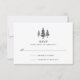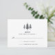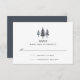 La carte RSVP blanche et éclatante correspond à notre mariage de forêt d'hiver chic et rustique et aux invitations à l'événement, et présente des pins silhoués dans marine fumée et gris bleu. Personnalisez avec la date RSVP souhaitée.