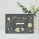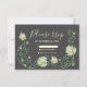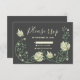 Cette élégante carte florale RSVP présente un design botanique complexe avec des fleurs d'ivoire mou courbant gracieusement à travers un arrière - plan de charbon profond. La calligraphie romantique et les détails délicats créent une esthétique raffinée mais moderne, parfaite pour les mariages vintages, gothiques ou du soir. Une façon sophistiquée de recueillir les réponses de vos invités tout en complétant un thème mariage fleuri.