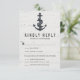 Une ancre de style tableau noir sur un arrière - plan gris clair "en bois". La bannière sur l'ancre indique RSVP. Tout le texte peut être customisé. Les options sur le RSVP incluent les sélections d'entrée. Parfait pour un mariage nautique, surtout si vous partez pour l'aspect rustique ou vintage.