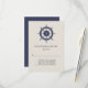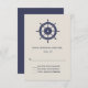 Carte de réponse RSVP de mariage sur le thème nautique en ivoire, avec dessin vintage bleu du volant d'un navire, sur le dessus. Personnalisez le texte bleu pour votre célébration mariage. Des produits correspondants sont disponibles.