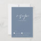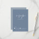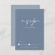 Simple Dusty Blue Script Wedding RSVP Card - Élégante et minimale, cette carte RSVP de mariage en script bleu poussiéreux ajoute une touche raffinée à votre suite de papeterie. Doté d'une typographie propre et d'une palette bleue douce, il complète parfaitement les thèmes mariages modernes ou classiques. Idéal pour rassembler les réponses des invités avec style.