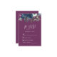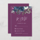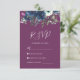 La bordure supérieure de cette carte d'enceinte RSVP romantique de mariage est ornée d'un bouquet floral aquarelle de prune violet et bleu marine et de fleurs et de verdure. Le titre "RSVP" apparaît dans un script d'écriture manuscrite, avec le texte personnalisable ci-dessous en blanc sur un arrière - plan de prune. L'envers est une couleur de prune solide qui se coordonne