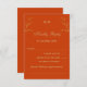 Personnalisez cette carte de mariage minimaliste RSVP avec un dessin délicat d'une branche d'olivier aux olives et feuilles, embrassant une esthétique botanique et élégante. Conçu contre un arrière - plan en terre cuite élégant, le design combine un script de calligraphie raffiné et des polices de typographie propres pour un look simple et sophistiqué. Le monogramme du couple est incorporé avec grâce, ajoutant une touche personnelle à cette carte de réponse intemporelle. Parfait pour les couples à la recherche d'une élégance sobre dans une ambiance naturelle et moderne.